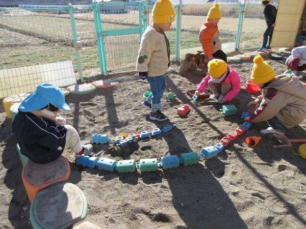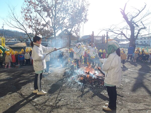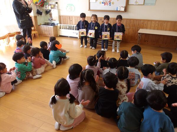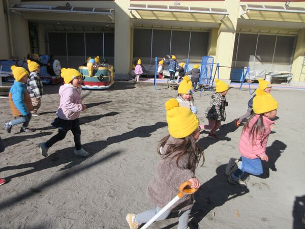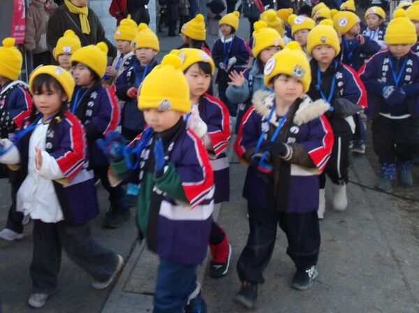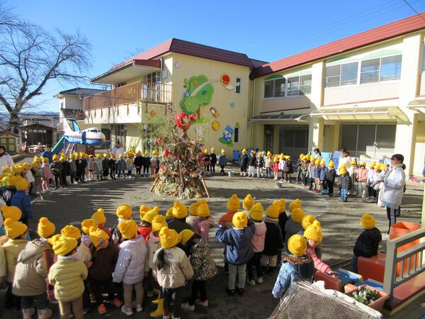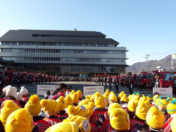 幼年消防クラブに属し、日頃から火遊びの怖さや火の取り扱いの大切さを学んでいます。園を代表して年長さくら組が出初式に参加して、防火パレードを行いました。消防団の方々の伝統技能や、消防車の機会器具点検の様子を見学しました。”だんだんうえだし消防団”の曲に合わせてカスタネットを鳴らして市内を行進しました。最後は市長さんの前で防火の誓いをして無事に終わりました。火の用心!みんなで気を付けましょう。