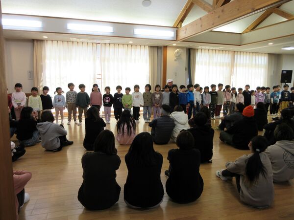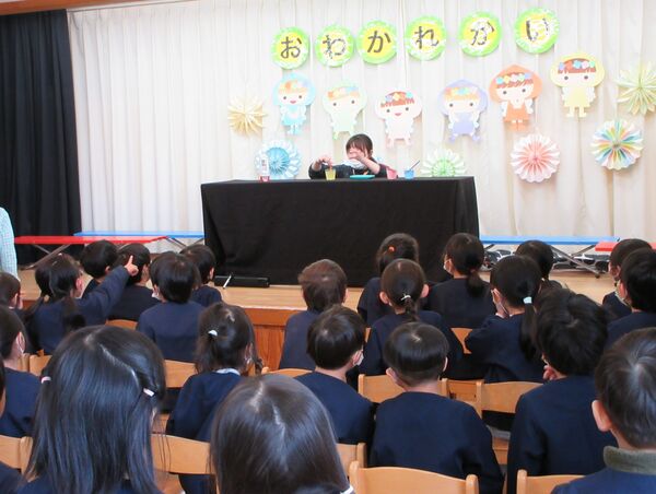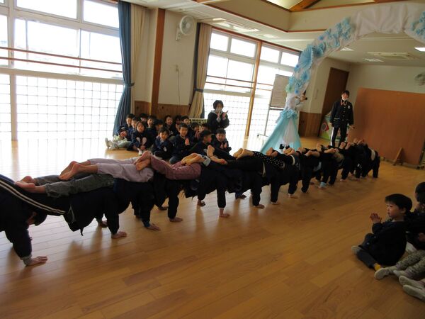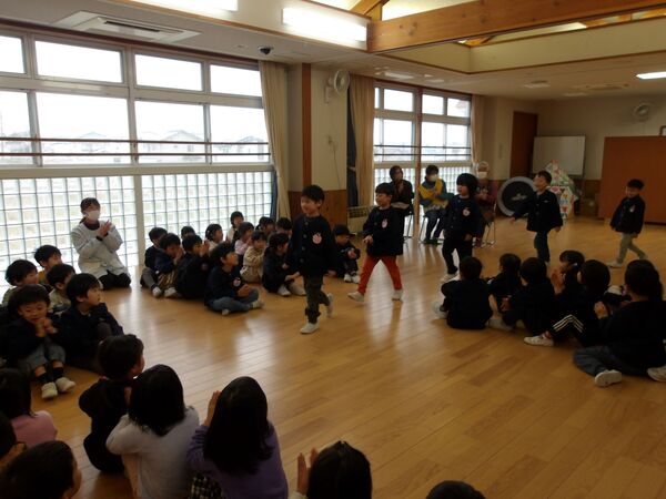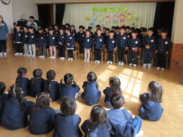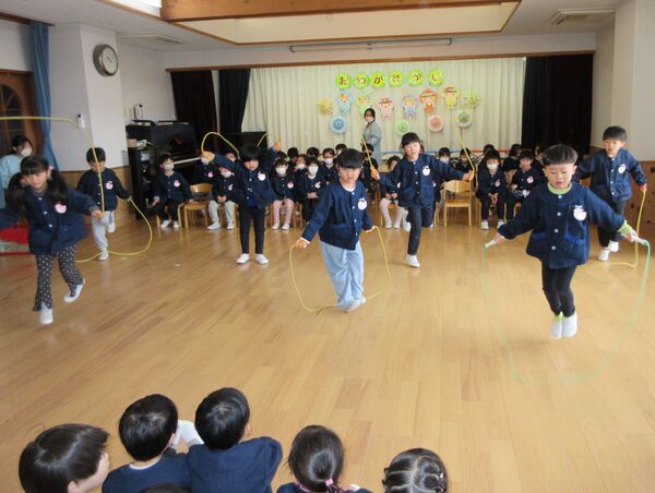 さくら組さんとのお別れ会がありました🌸 さくら組がホールに入場する姿も大きくなったんだな〜としみじみ思いました。 たんぽぽ組、すみれ組からの呼びかけや歌でありがとうの気持ちを伝えました。 さくら組は出来るようになった事を発表してくれました(*^-^*)かっこよかったです! 縄跳びやこま回しや鉄棒、組体操も見せてくれました。歌や呼びかけも披露してくれました‼ 先生達からは手品のプレゼント!みんなビックリしていました(*^▽^*) 最後にすみれ組とさくら組のプレゼント交換、手作りのネックレスとペン立てをそれぞれ作って交換しました(^^♪卒園までもう少しだけど、たくさん遊ぼうね‼ 2026/03/10