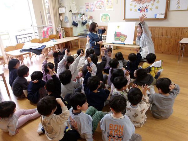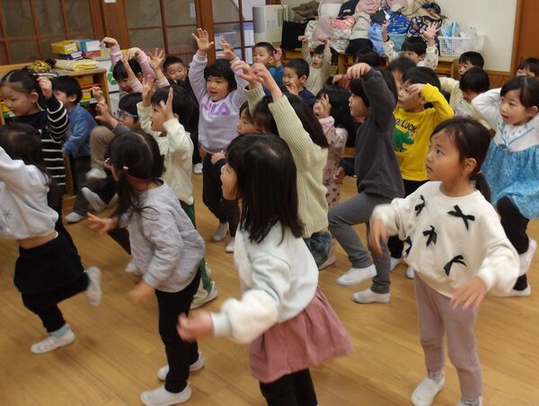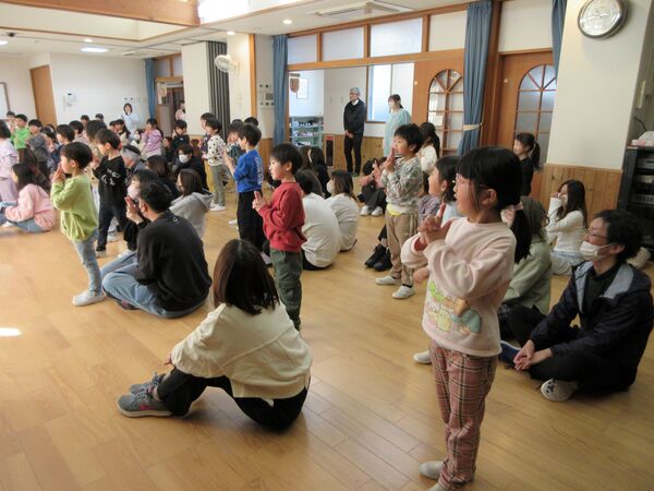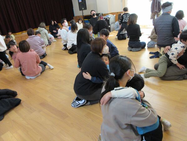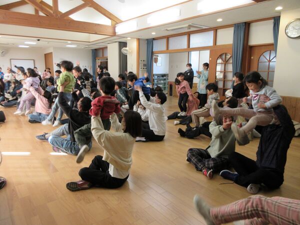 たにぞうさん親子コンサート 「バスにのって」「しゅりけんにんじゃ」「ブンバボーン」などの作者であり、「ダーウィンが来た!」の動物カメラマンとしても活躍中のたにぞうさんこと谷口國博さんが、にしおかでコンサートをしてくれました♬ みんなにこにこ楽しかったね(*^▽^*) お家の方の膝に乗ってたにぞうさんの歌に合わせてゆらゆら(*^-^*) 音に合わせて子どもたちを思いっきり持ち上げて〜! 「おすしすしすし」では上に乗ったりツンツンしたり お家の方とギューってして嬉しいね(*^-^*) 「しゅりけんにんじゃ」で思いっきり体を動かしたよ(^O^)/ お家の方の前で「約束」をみんなで歌ったよ(*^-^*)とっても素敵でした 2026/02/20