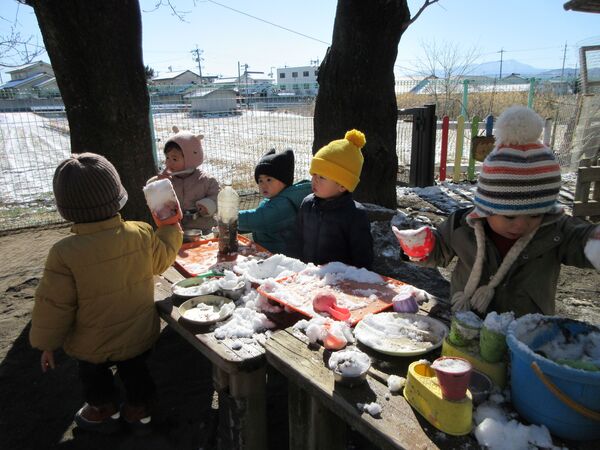 ~とびだそう広い大地へ〜今回は雪遊び!菅平高原へ行って、やまぼうし自然学校のみなさんに色々教えていただきながら、ふかふかの雪山を楽しんできました!ソリをしたり雪だるまやかまくらも作れるほど沢山の雪がありました。−10度を示す気温計に驚きましたが、雪山を駆けまわり寒さはさほど感じず遊べました。また一つ楽しい思い出が増えました(*^▽^*)