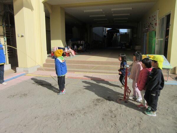 幼年消防クラブに属し、日頃から火遊びの怖さや火の取り扱いの大切さを学んでいます。園を代表して年長さくら組が出初式に参加して、防火パレードを行いました。消防団の方々の伝統技能や、消防車の機会器具点検の様子を見学しました。”だんだんうえだし消防団”の曲に合わせてカスタネットを鳴らして市内を行進しました。最後は市長さんの前で防火の誓いをして無事に終わりました。火の用心!みんなで気を付けましょう。